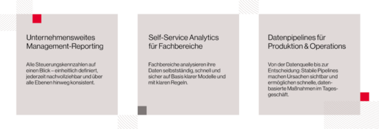 - Die Gewissheit, auf die richtigen Daten zu setzen und eine Architektur zu wählen, die auch langfristig zu Ihrem Business passt.