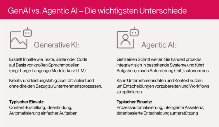 In unserem Projektalltag zeigt sich bei Unternehmen rund um die Einführung von Generativer KI immer wieder eine Herausforderung: Die Technologie nicht nur als Trend zum Selbstzweck, sondern als strategischen Hebel für Produktivität und Innovation zu nutzen. Dabei ist das oft weniger eine reine Tool- als vielmehr eine Infrastruktur- und Kulturfrage. Mit Microsoft Copilot bietet sich für viele Unternehmen eine Lösung an, die weit über klassische Generative KI hinausgeht und alle zentralen Erfolgsfaktoren miteinander kombiniert: Denn Copilot kombiniert die Stärken von GenAI mit den Prinzipien der Agentic AI – und das direkt in Ihrer Arbeitsplattform Microsoft 365.